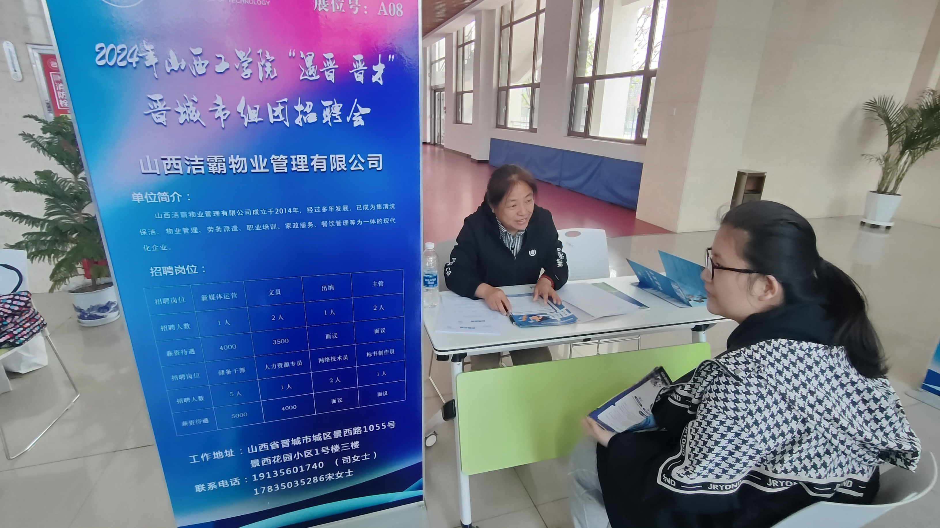 為搭建優(yōu)質(zhì)供需對接平臺,拓寬人才招聘渠道,為用人單位按需精準(zhǔn)引進(jìn)人才,4月25日,晉城市城區(qū)人社局組織10余家重點(diǎn)企業(yè)赴大同、朔州在大同大學(xué)、山西工學(xué)院開展“百城千校萬企”促就業(yè)山西行動(dòng),潔霸公司作為城區(qū)民營企業(yè)的代表積極參加了此次活動(dòng)。